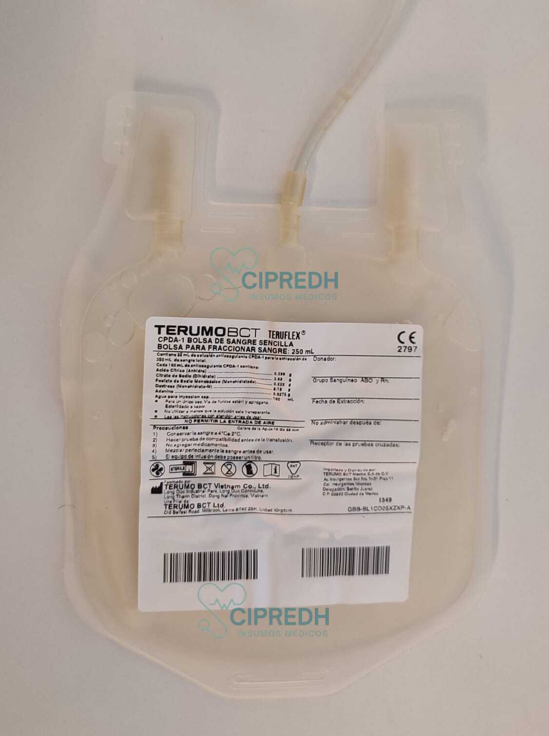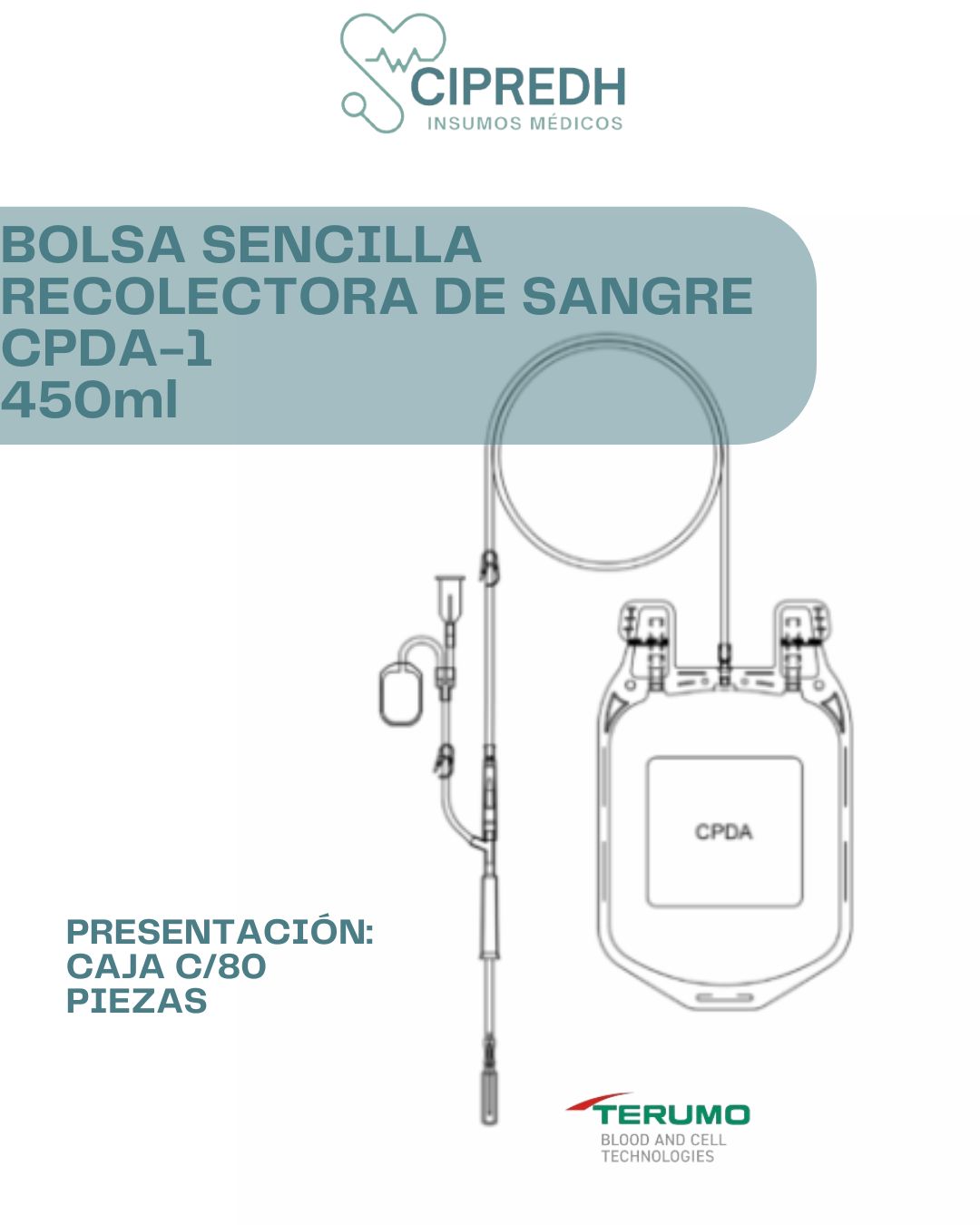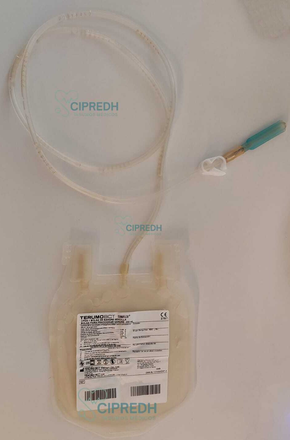 Bolsa recolectora de sangre sencilla marca TERUMO de 450 ml. con anticoagulante CPDA-1